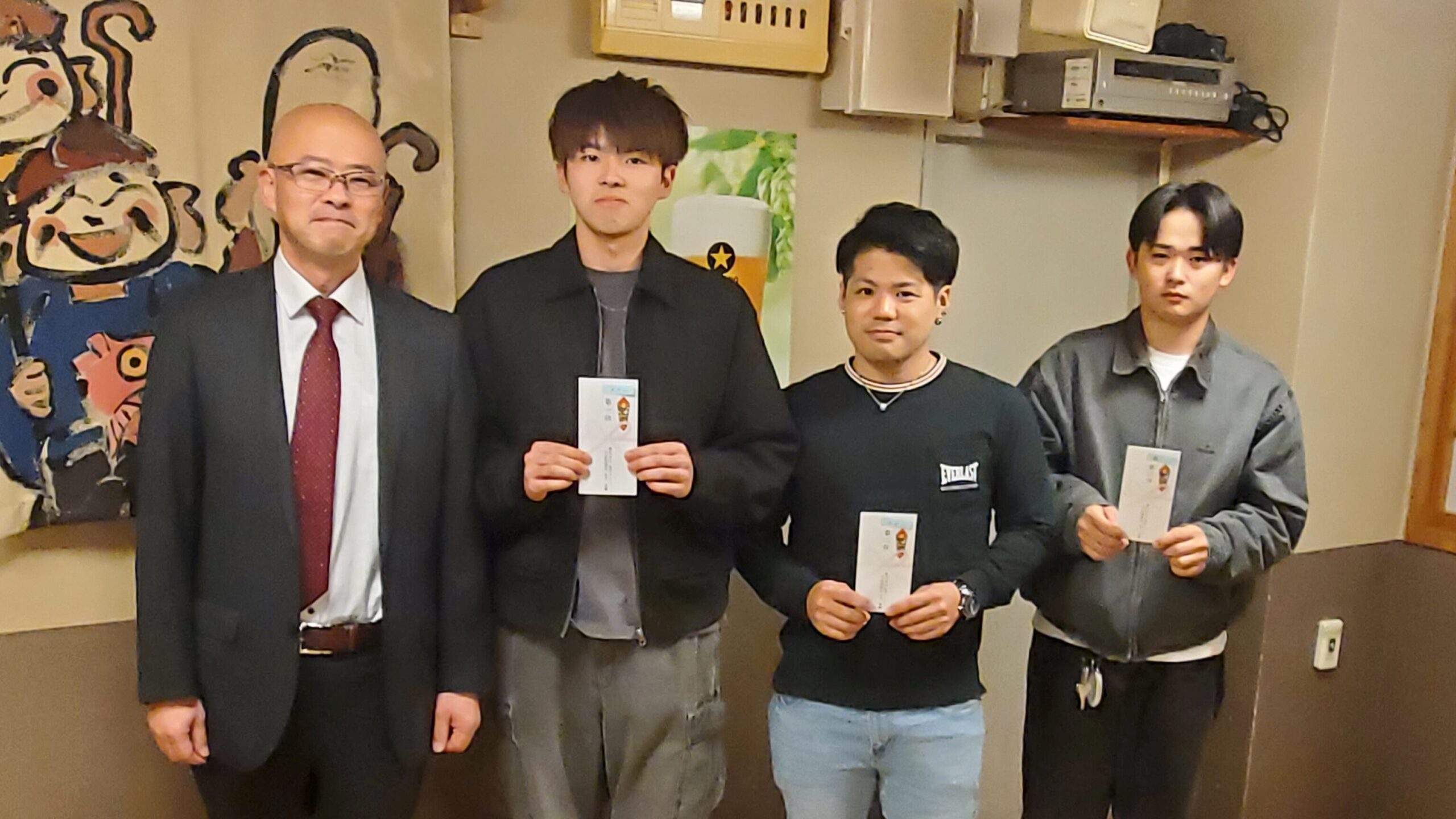 島守・木村・瀬川へ、社長から賞金💰が授与されました♪オメデトー👏